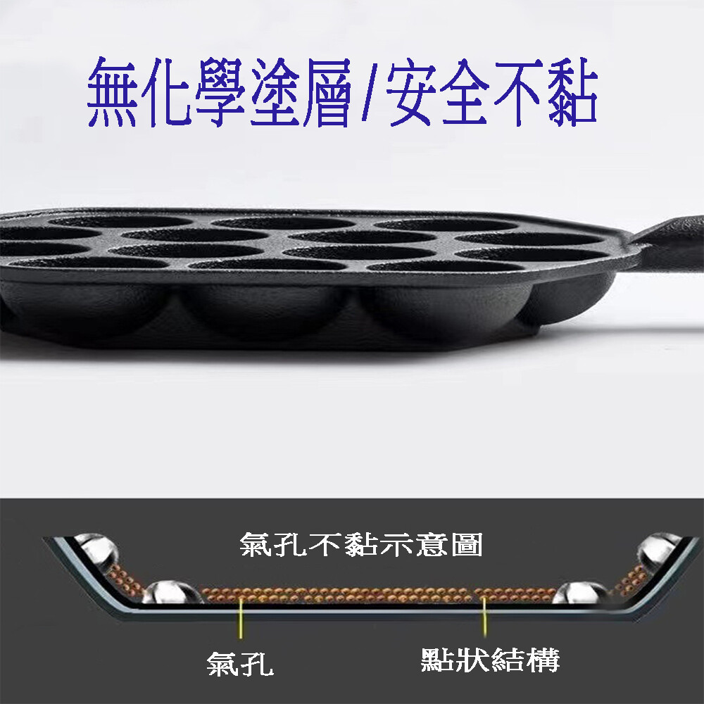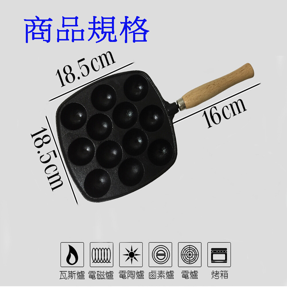 品名:12孔鑄鐵章魚燒烤盤(送油刷及叉子)