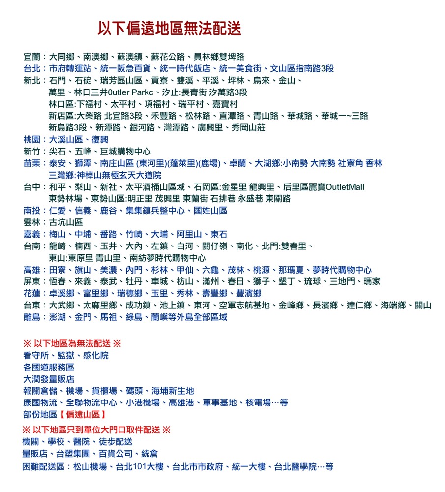 ※偏遠/離島/特殊地區無法配送:請詳看頁面說明
