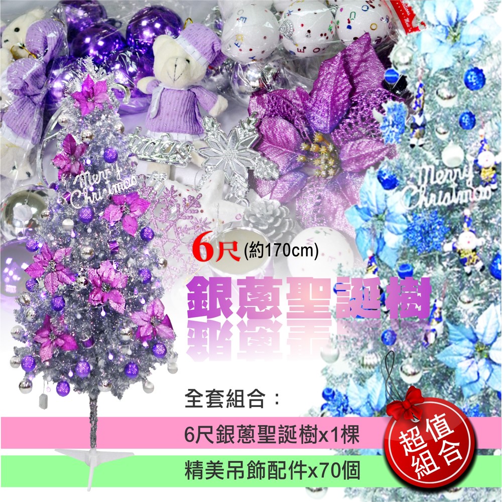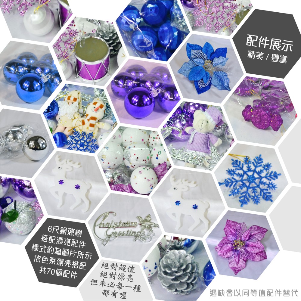 聖誕樹6尺銀蔥+70個聖誕飾品送LED串燈+樹頂星*聖誕節年年熱銷 台灣賣家 台灣出貨