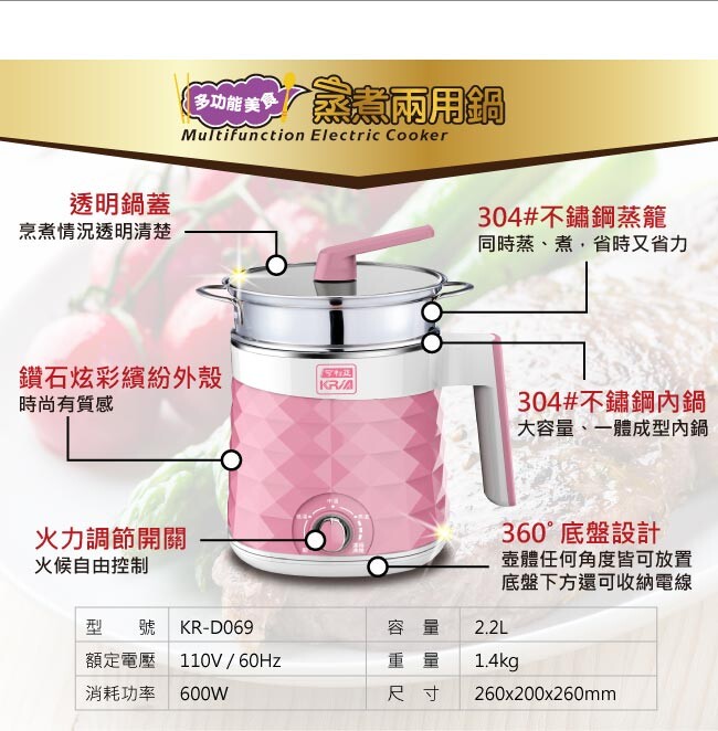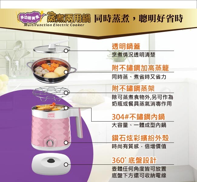 ◎一體成型304#不鏽鋼內鍋、蒸籠