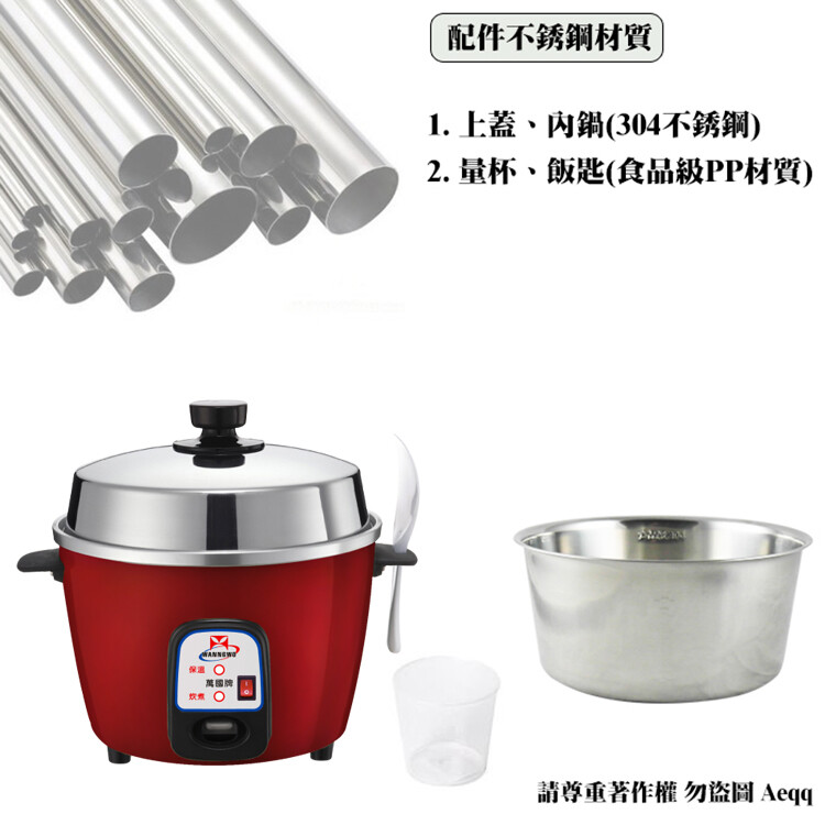 配件:量米杯、飯匙、不鏽鋼內鍋、不鏽鋼上蓋