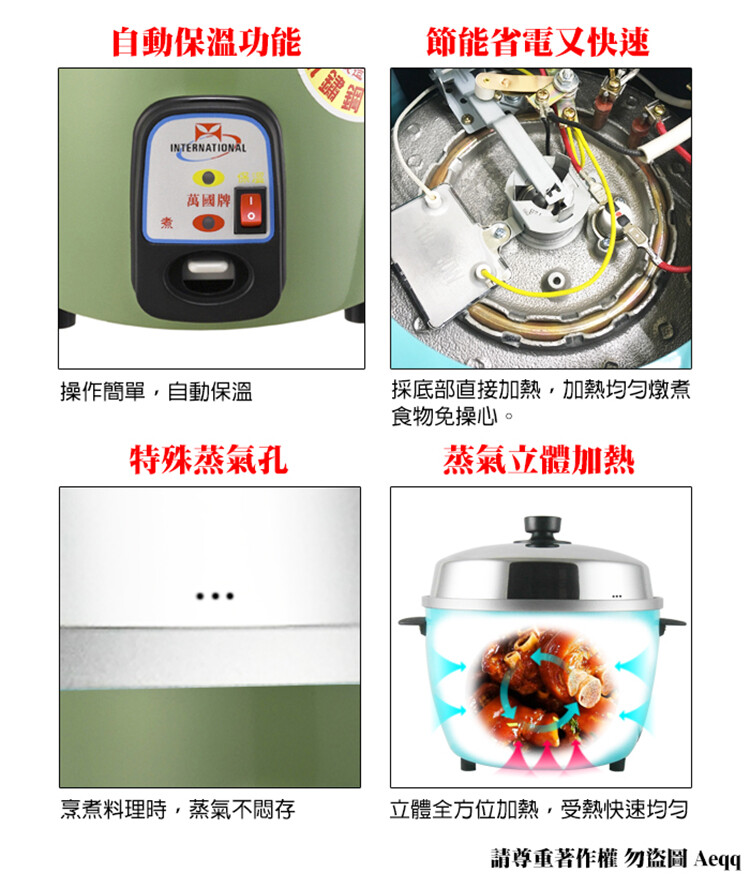 電器妙妙屋-【萬國牌】6人份自動保溫電鍋(AQ-6S/AQ6S)