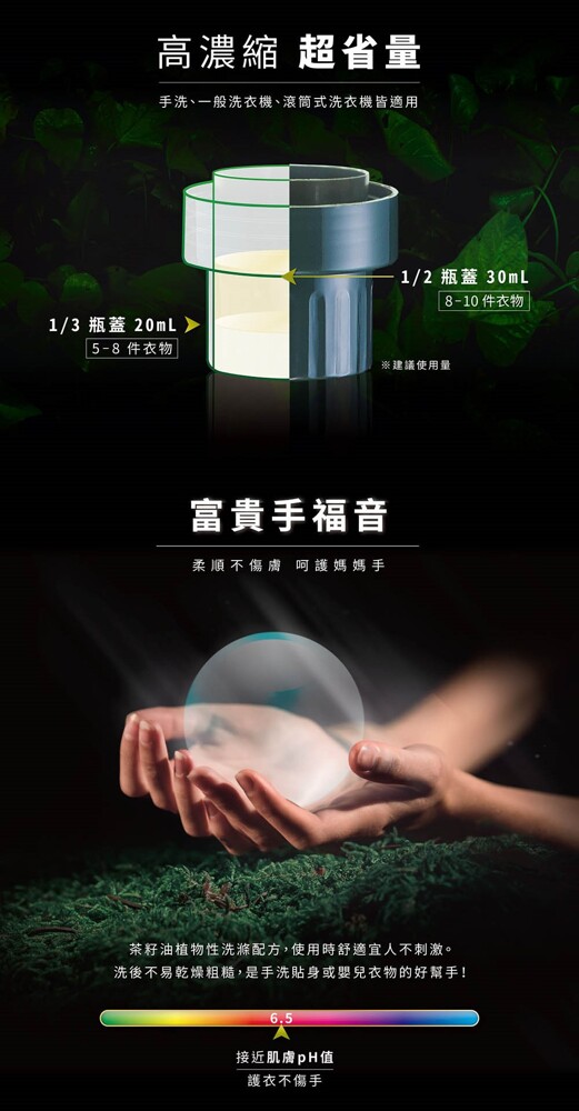 ●採用台灣珍貴茶籽精華的潔淨配方,茶籽皂素提升洗淨力,自然分解汙垢,不擔心殘留衣物,好洗又環保。