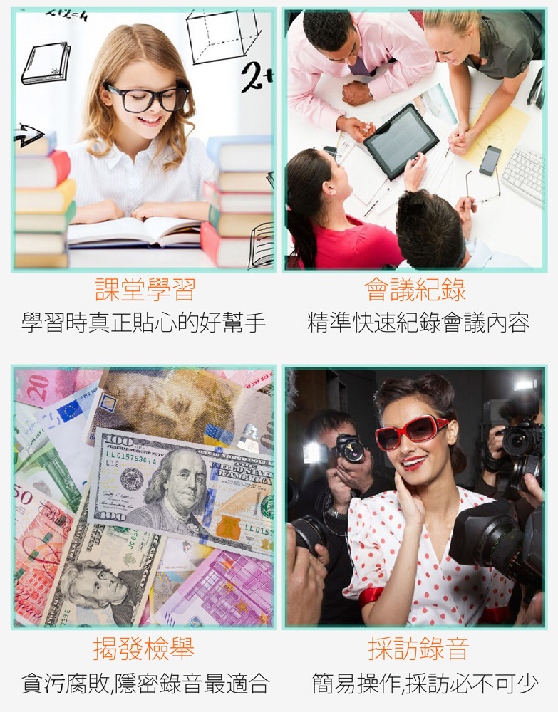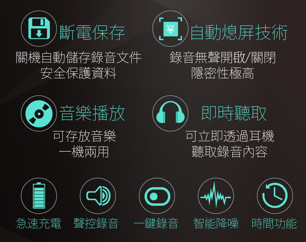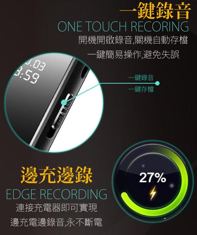 ★ 一鍵錄音 智能隱形,無聲/燈光提示,隱密性高