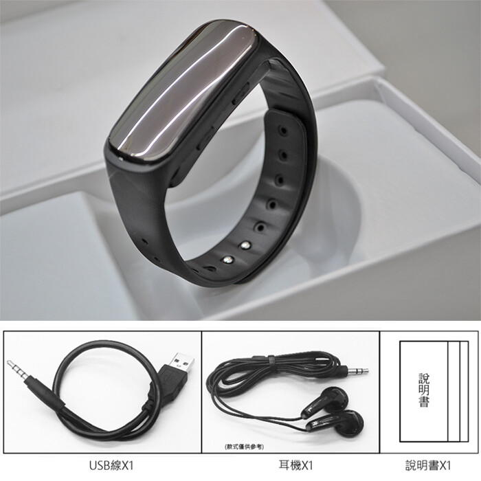商品內容: 手環x1、充電線(傳輸線)x1、耳機x1、說明書x1