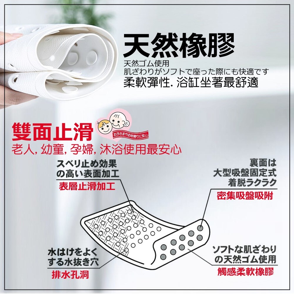 ■ 觸感良好的天然橡膠材質,沐浴時即使坐在止滑墊上,也感覺舒適不堅硬