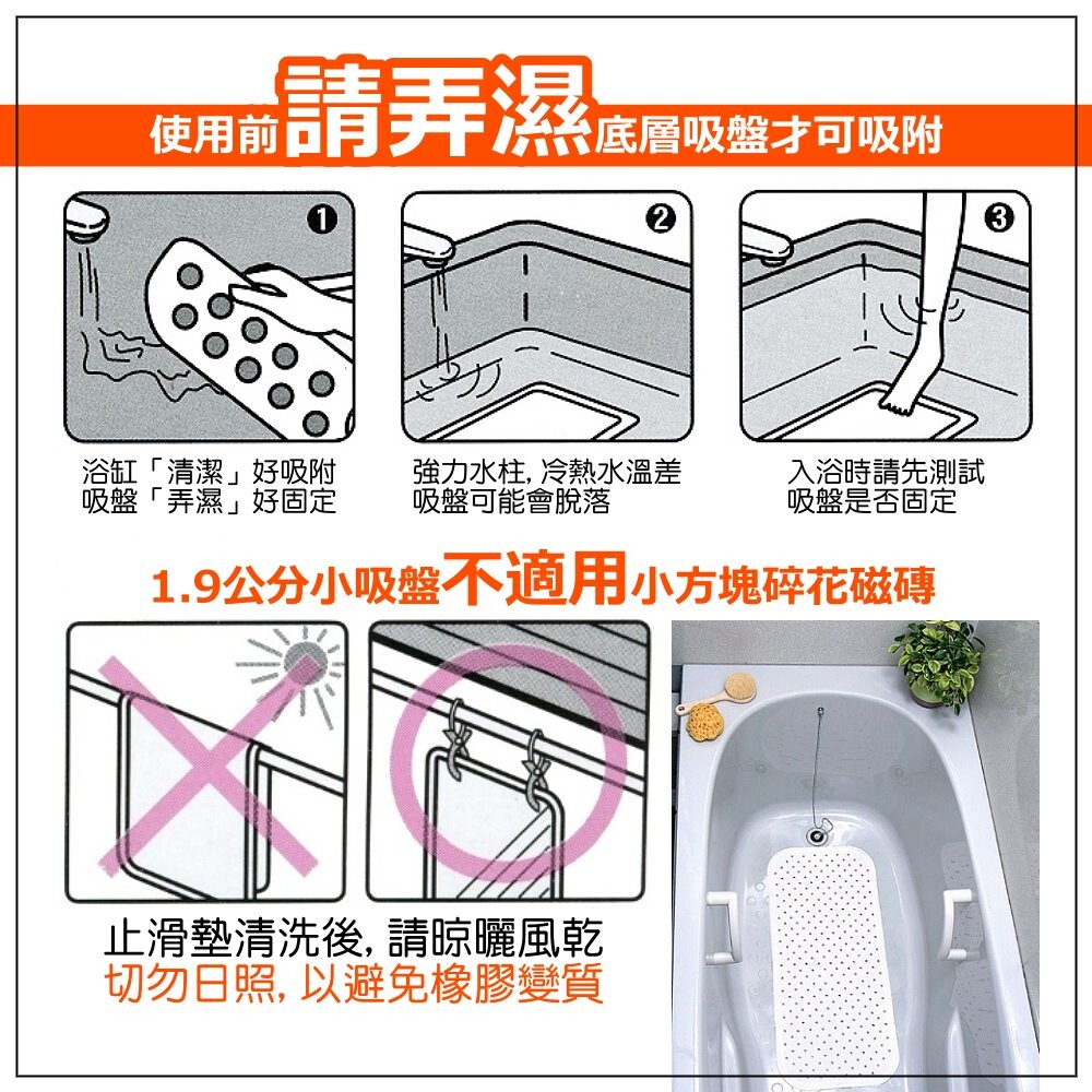 ■ 日本waise浴室止滑墊使用時,請先用少許水弄濕止滑墊反面的吸盤,再以按壓的方式固定於吸附的地方
