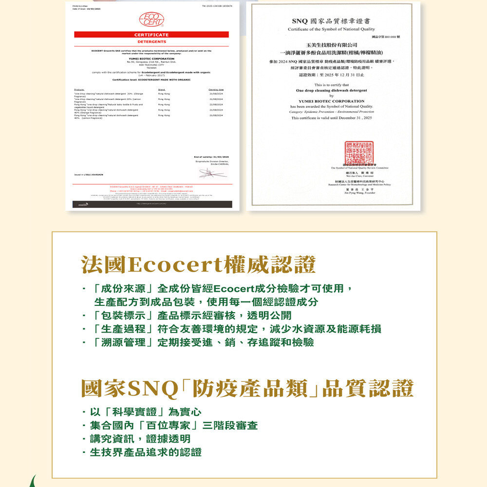 權威認證:取得國際法國Ecocert 認證