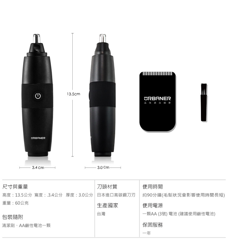 【URBANER奧本】MB-061B 奧本PREMIUM水洗式鼻毛刀_黑 (鼻毛刀頭/鼻毛剪/防水)