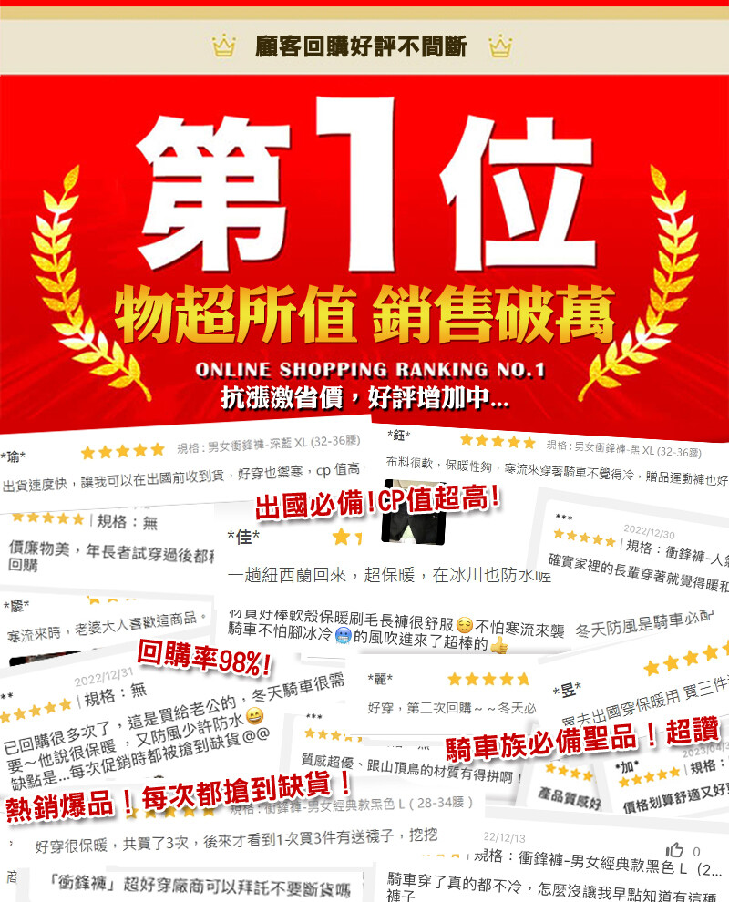 ✔ 男女皆宜新機能防寒褲!!保證全站最便宜!