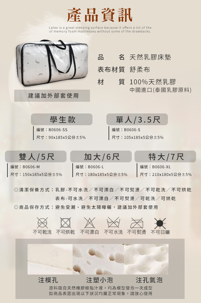 材質:100%天然乳膠中國進口(泰國乳膠原料)