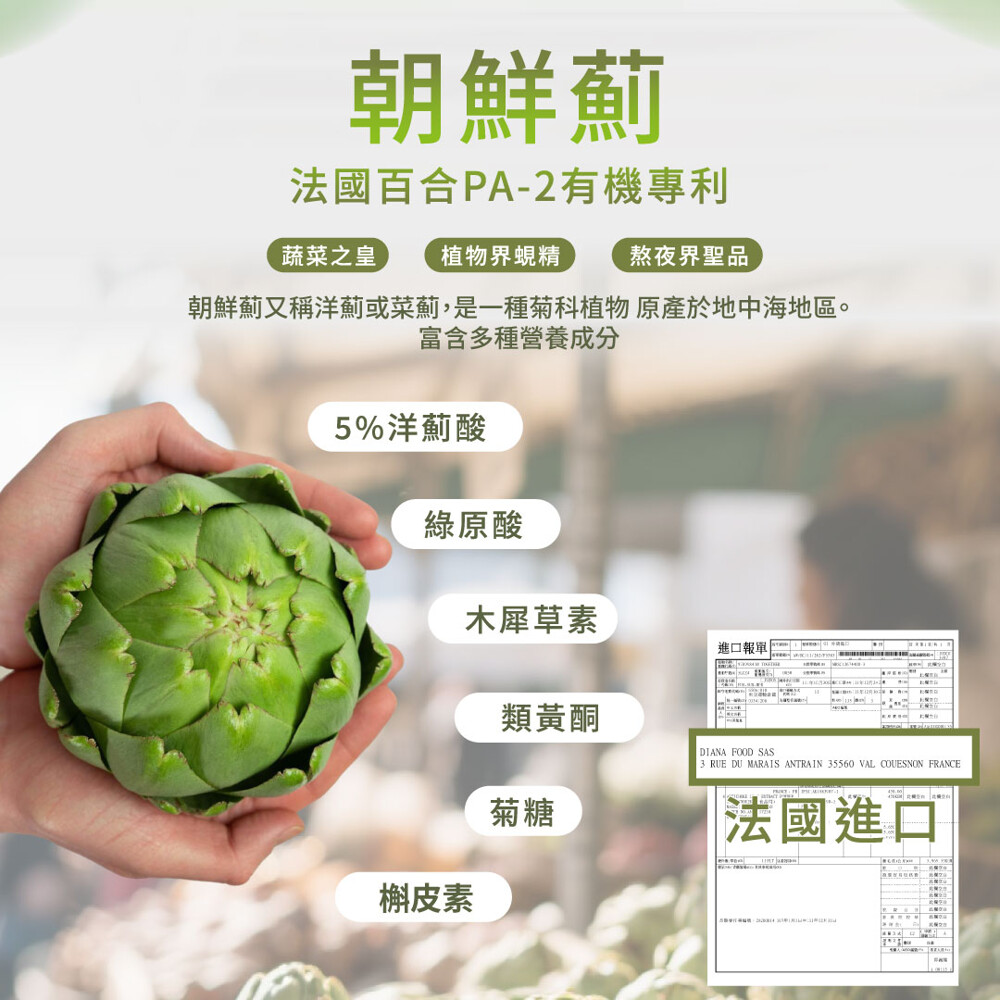 朝鮮薊(Artichoke)是一種古老植物,富含獨特的活性物質「薊多酚」,可以調節機能增強體力,現代科學研究證實能促進新陳代謝。