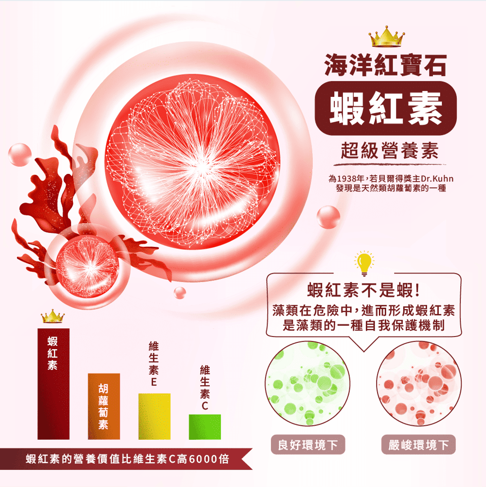 o 蝦紅素:晶亮保養給你最優異的防禦力