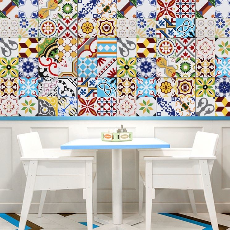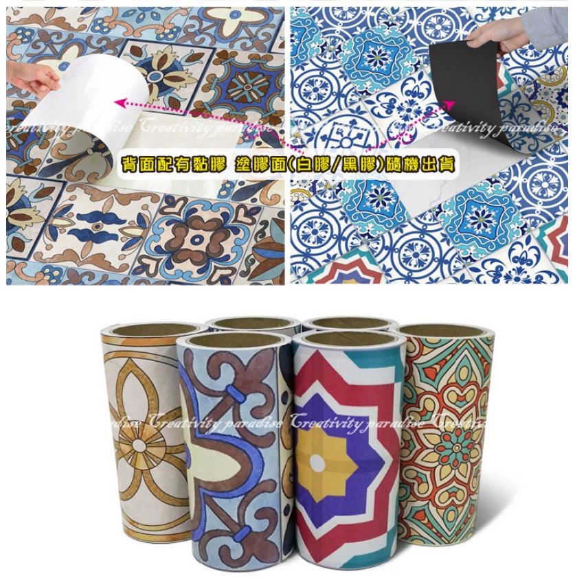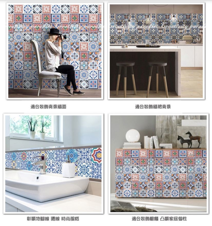 防水壁紙 仿地磚貼 幾何藝術瓷磚貼紙