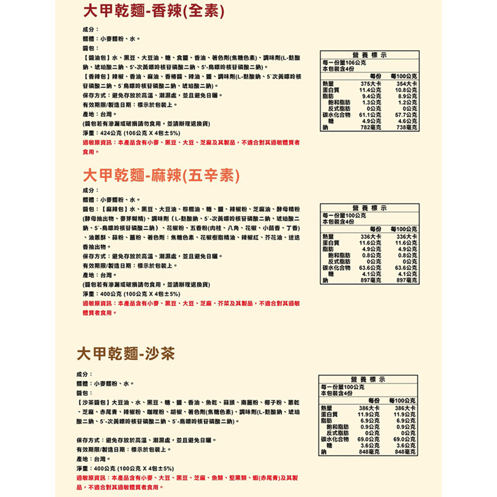 油蔥包:油蔥酥,紅蔥油,耐炸油(軟質棕櫚油,大豆油),醬油(水,黃豆,小麥,食鹽,酒精,調味劑,氨基乙酸)