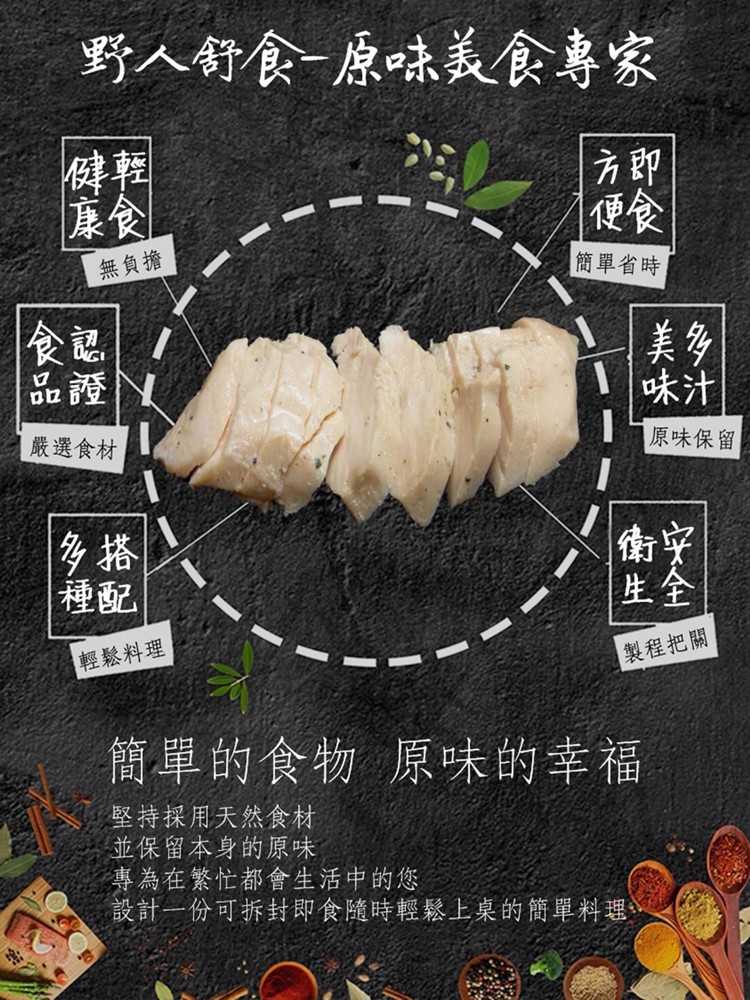 成分:雞胸肉、橄欖油、鹽、羅勒、黑胡椒、百里香、蒜粒