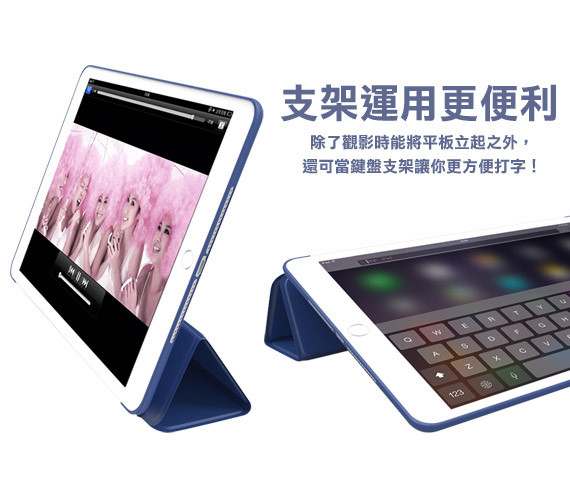 不同於一般的平板三折保護皮套,背殼採用矽膠軟殼,裝卸平板更簡單且不傷機體。