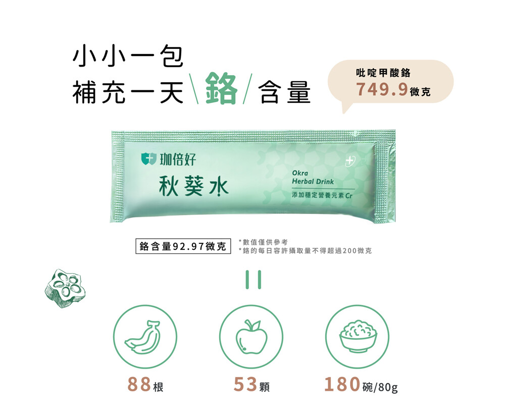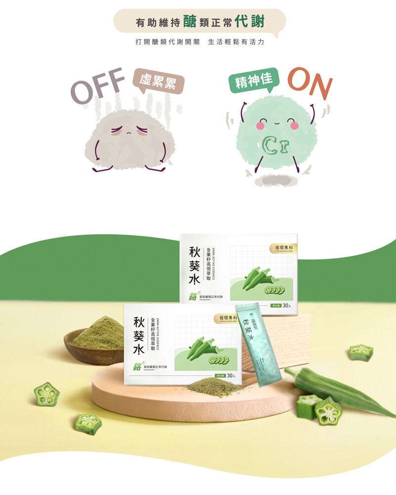 ◎ 秋葵異槲皮素 + 鉻,有助於維持醣類正常代謝