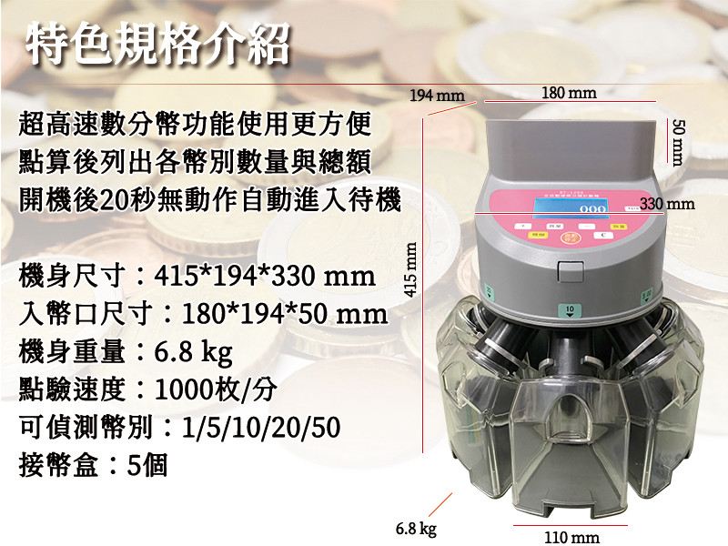 點算時請勿將塑膠代幣、非新台幣等硬幣置入機內,以免造成阻塞、損傷內部零件