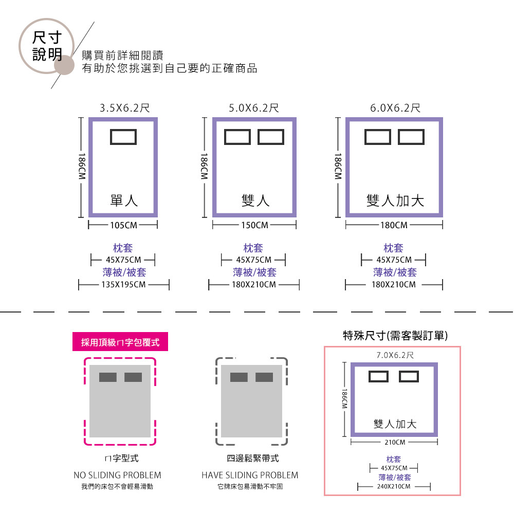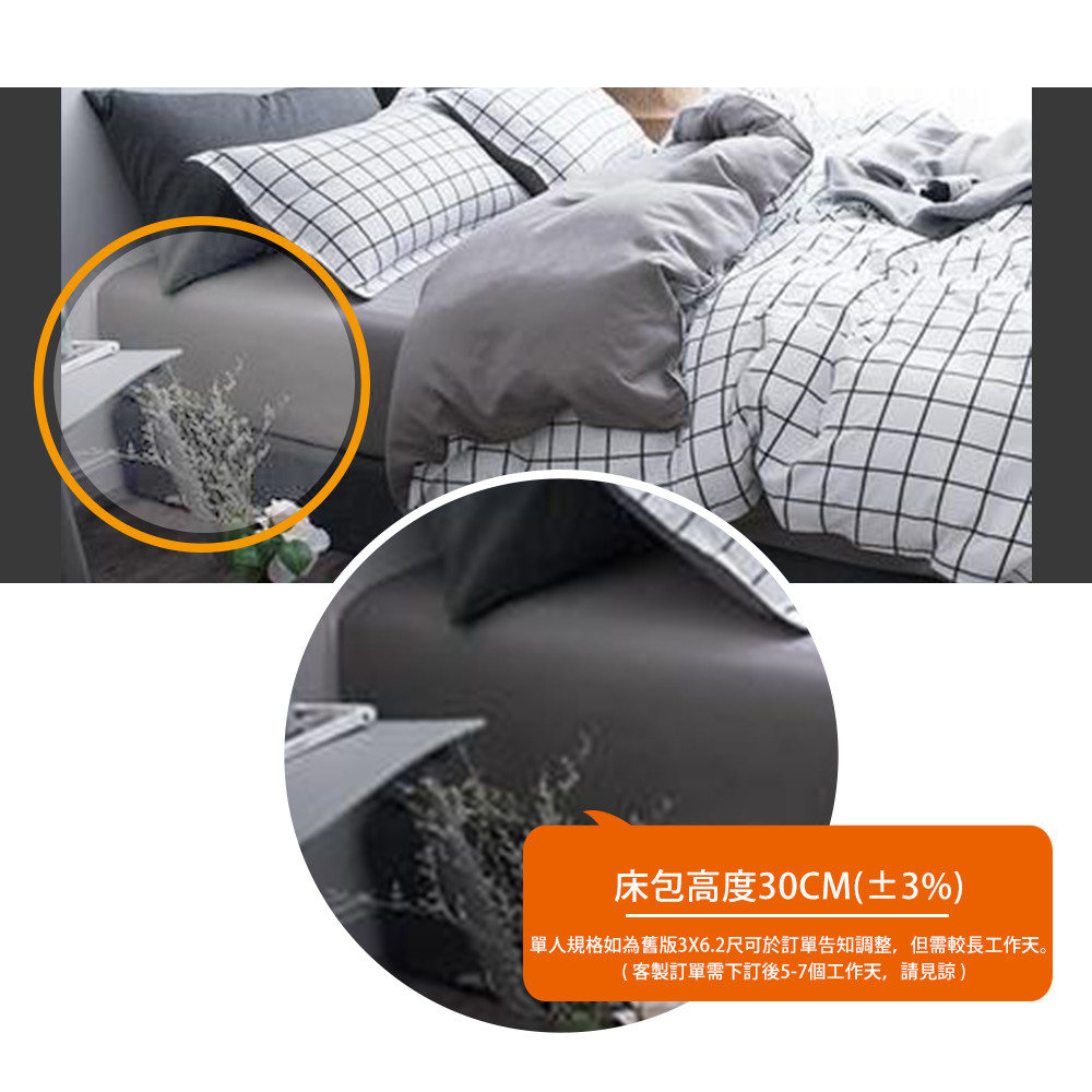 因商品為訂製式訂單,確認下訂後,產品出貨仍需一定的工作天(最快約3個工作天),請您耐心等候,且您的床包於備註有告知修改之細節尺寸,需再額外增加5-7個工作天才能出貨喔!