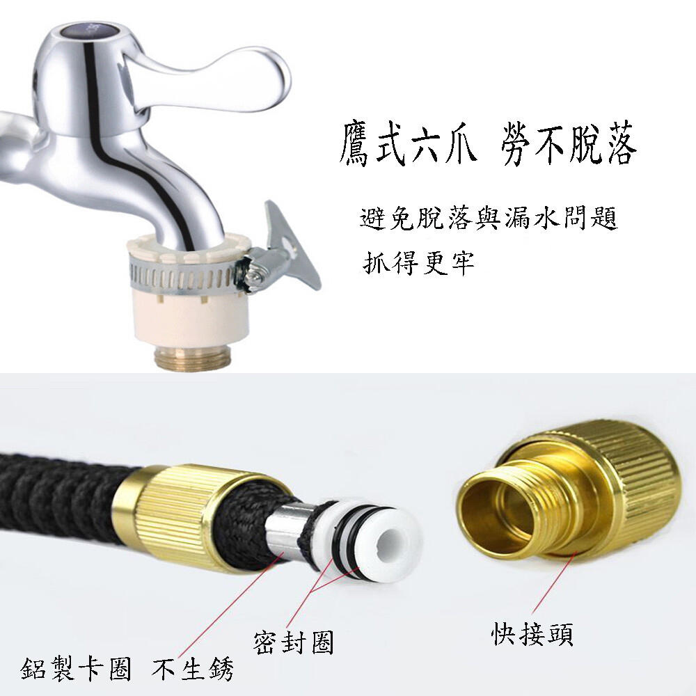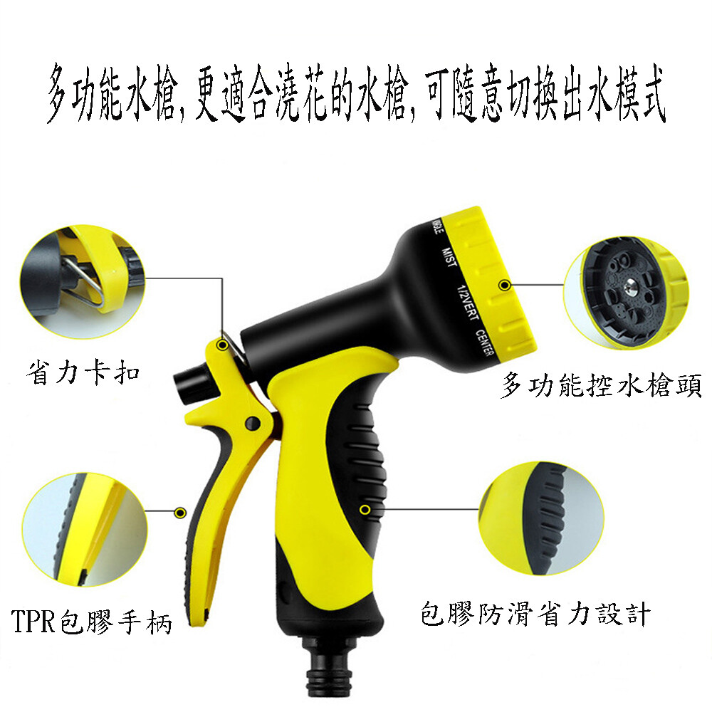 配件:魔術水管x1、10段式強力水槍x1、萬用銅水龍頭轉接器x1 收納袋*1