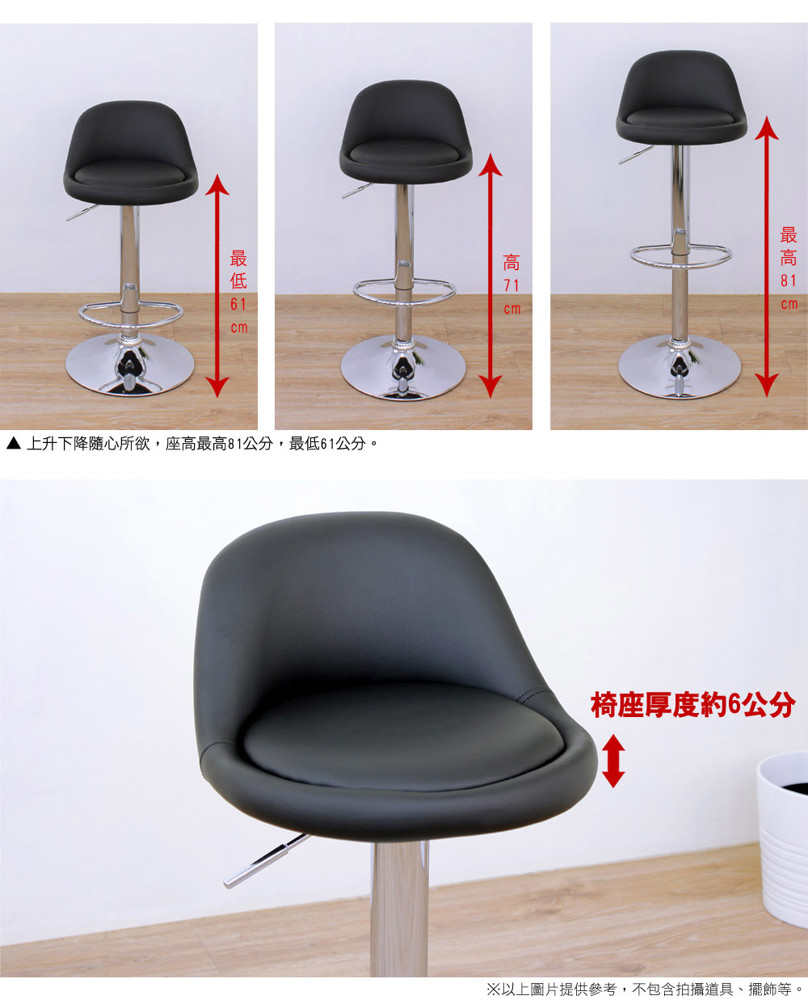◆椅座高度:最低 61 公分 - 最高 81 公分。