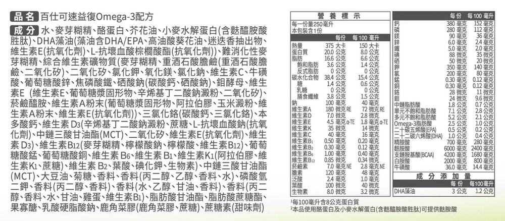 ■ 專利藻油Omega-3 2.5公克,EPA DHA共1.5公克,促進食慾 增強體力