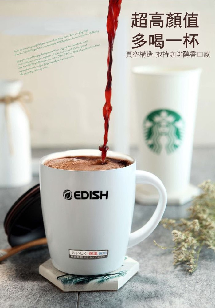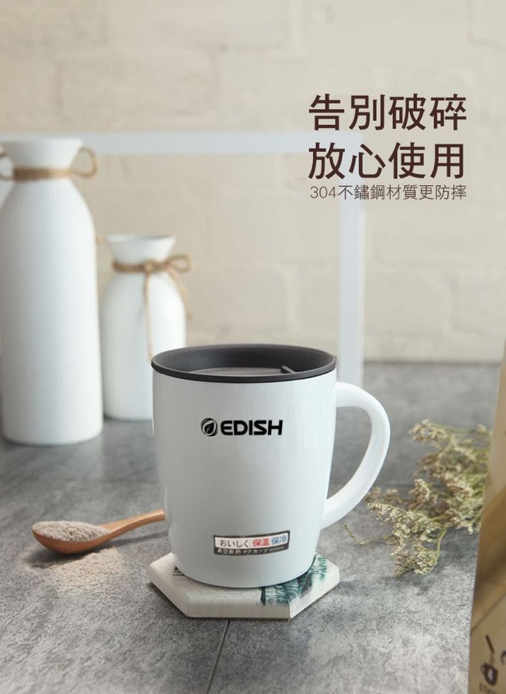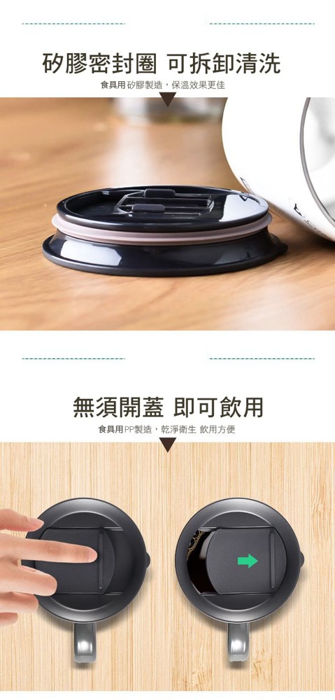 304不鏽鋼真空陶瓷咖啡馬克杯, ,食品級硅膠密封杯圈,真空隔熱持續保溫保冷,一年四季都能用,推拉滑蓋設計,無需開蓋,直接飲用, 大杯口設計,陶瓷塗層內裡,清洗方便,防滑杯底,不易傾倒!