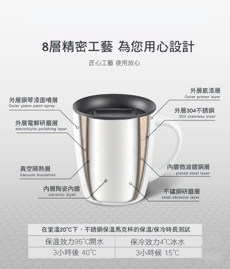 材質/型號:材質:外層:304不鏽鋼、內層:陶瓷塗層、杯蓋:PP(可耐熱至120度)