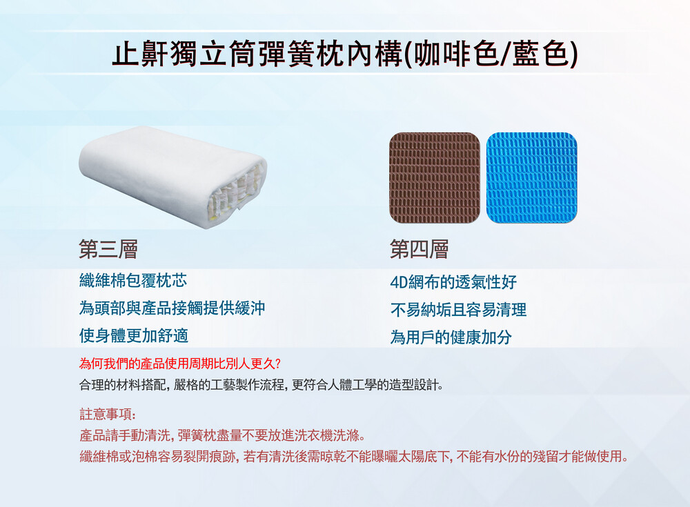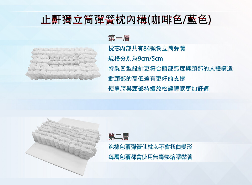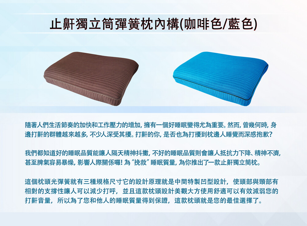 止鼾獨立筒彈簧枕(藍色)(咖啡色)