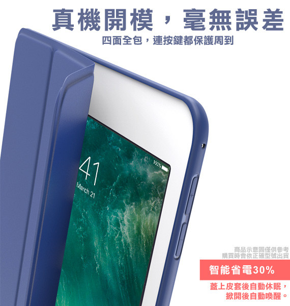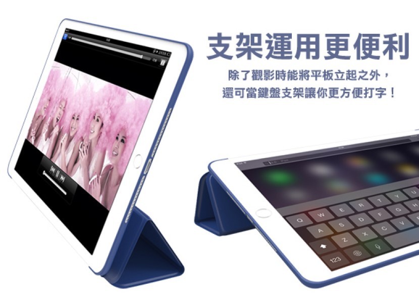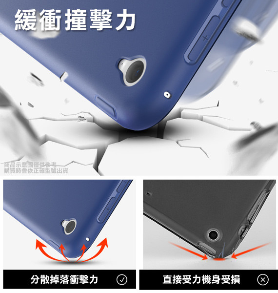 不同於一般的平板三折保護皮套,背殼採用矽膠軟殼,裝卸平板更簡單且不傷機體。