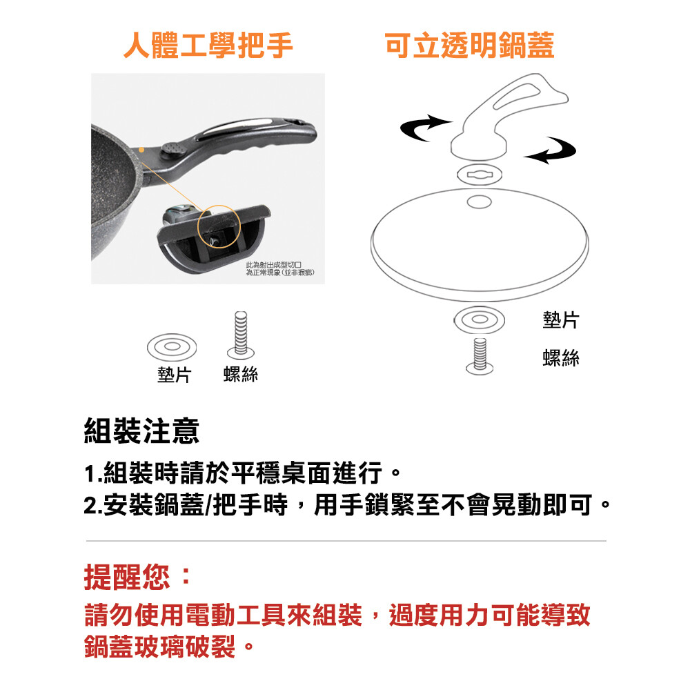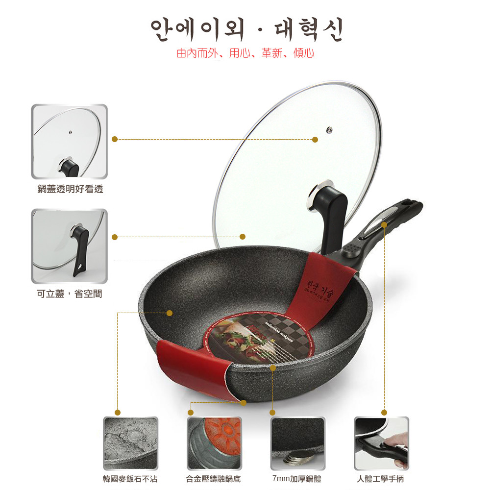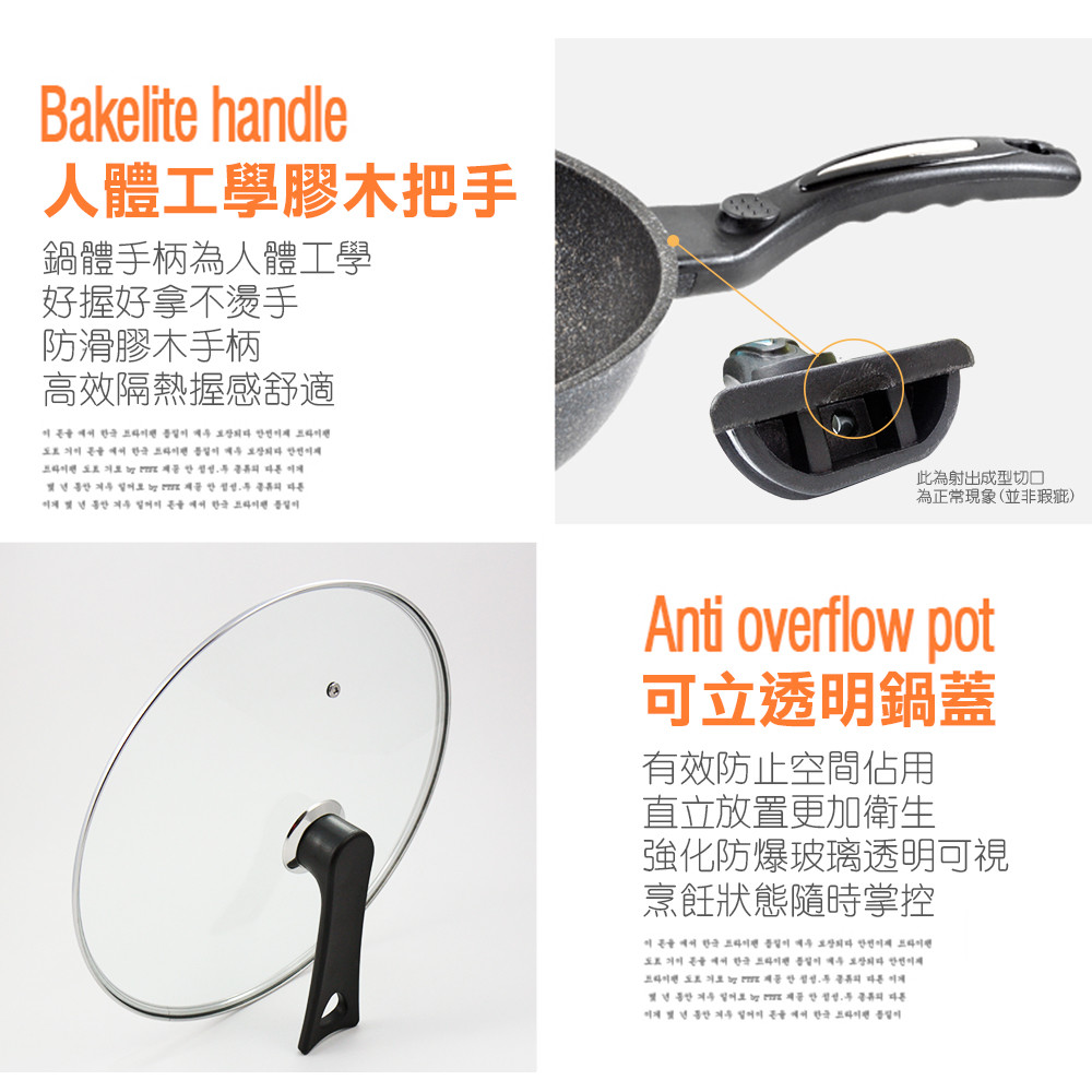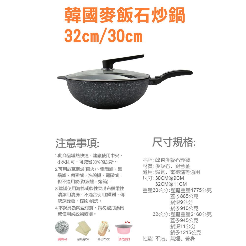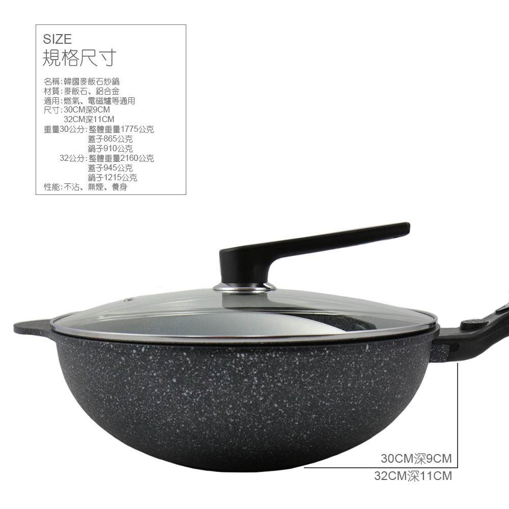 ☆天然麥飯石 無油煙 不粘鍋 ☆強化玻璃鍋蓋 烹飪更安全 ☆導熱迅速 更耐磨抗腐 ☆防滑手柄 高效隔熱 材質:麥飯石、鋁合金 尺寸:深度9cm 重量:整體1775公克、鍋蓋865公克、鍋體910公克 保固/試用範圍:無