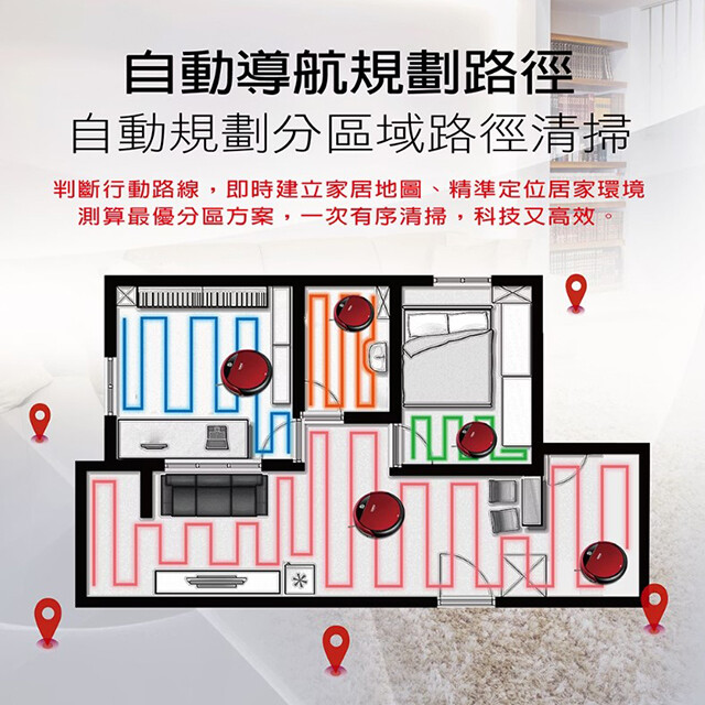 ❁自動認路並規畫路徑清掃及分區清掃功能