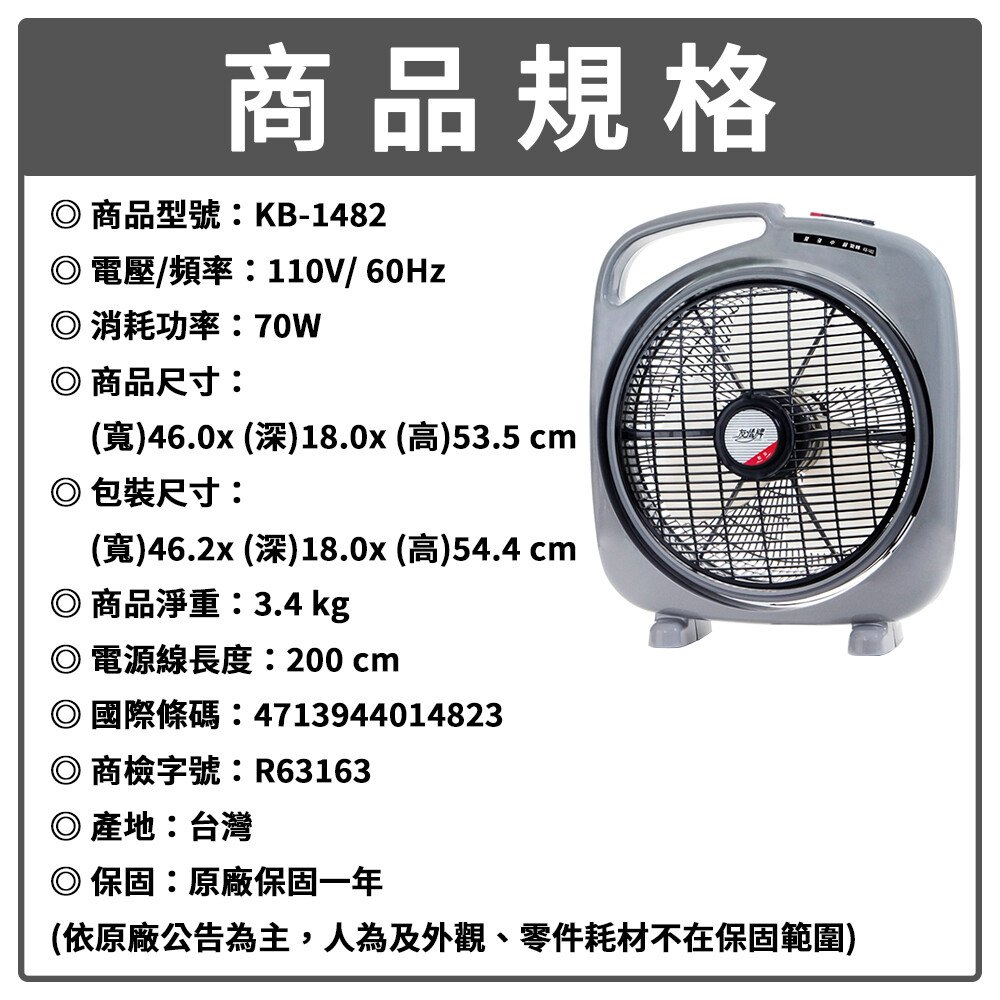 友情牌 14吋手提箱扇.電扇 KB-1482 ~台灣製造