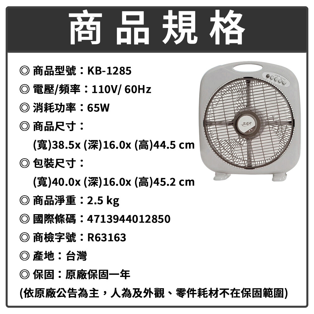 友情牌 12吋手提箱扇.電扇(不可仰角) KB-1285 ~台灣製造