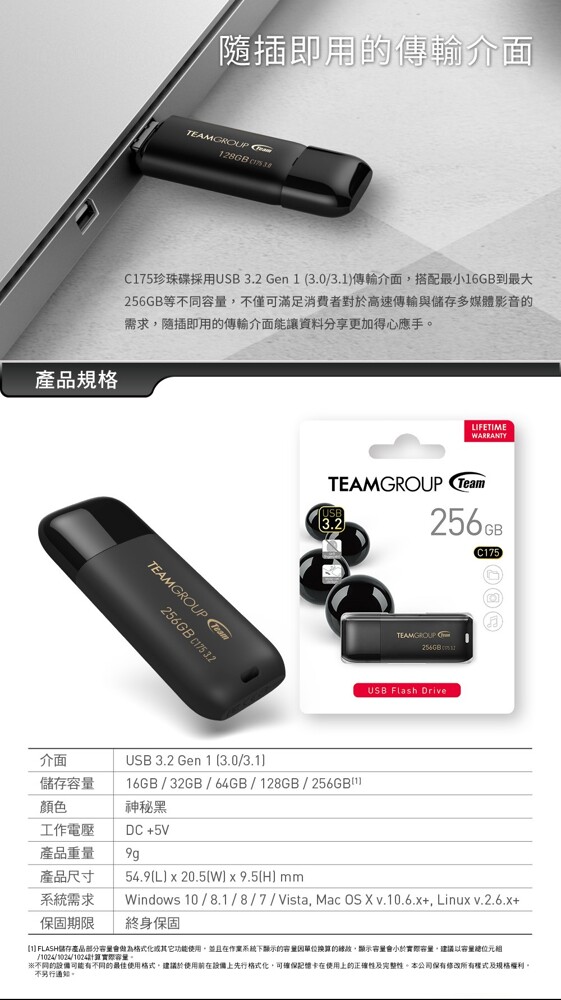 介面:USB 3.2 Gen 1 (3.0/3.1)