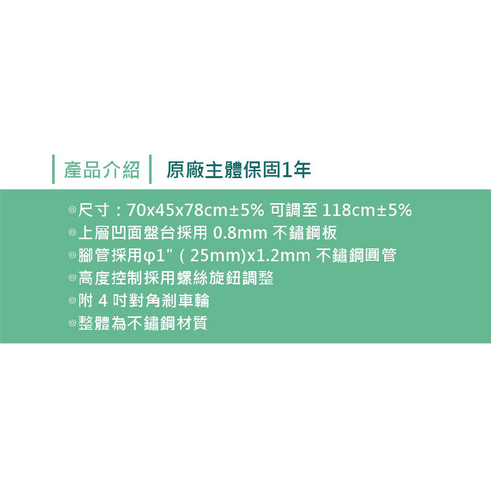 來而康 耀宏 不銹鋼 附輪 工具台車 YH069 不鏽鋼 工具車 工具台 盤台 置物車