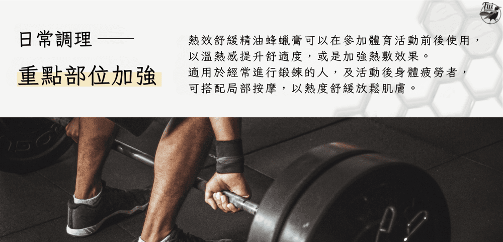 成分:橄欖油、椰子油、紐西蘭蜂蠟、山金車油、黑胡椒精油、白千層、樟腦、胡椒薄荷、青椒、生薑精油和維生素E製成