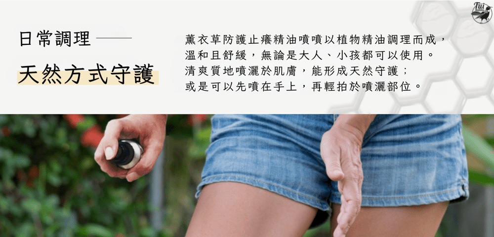 到戶外享受芬多精洗禮或是野外露營時,薰衣草防護止癢精油噴噴是你外出最好的選擇!