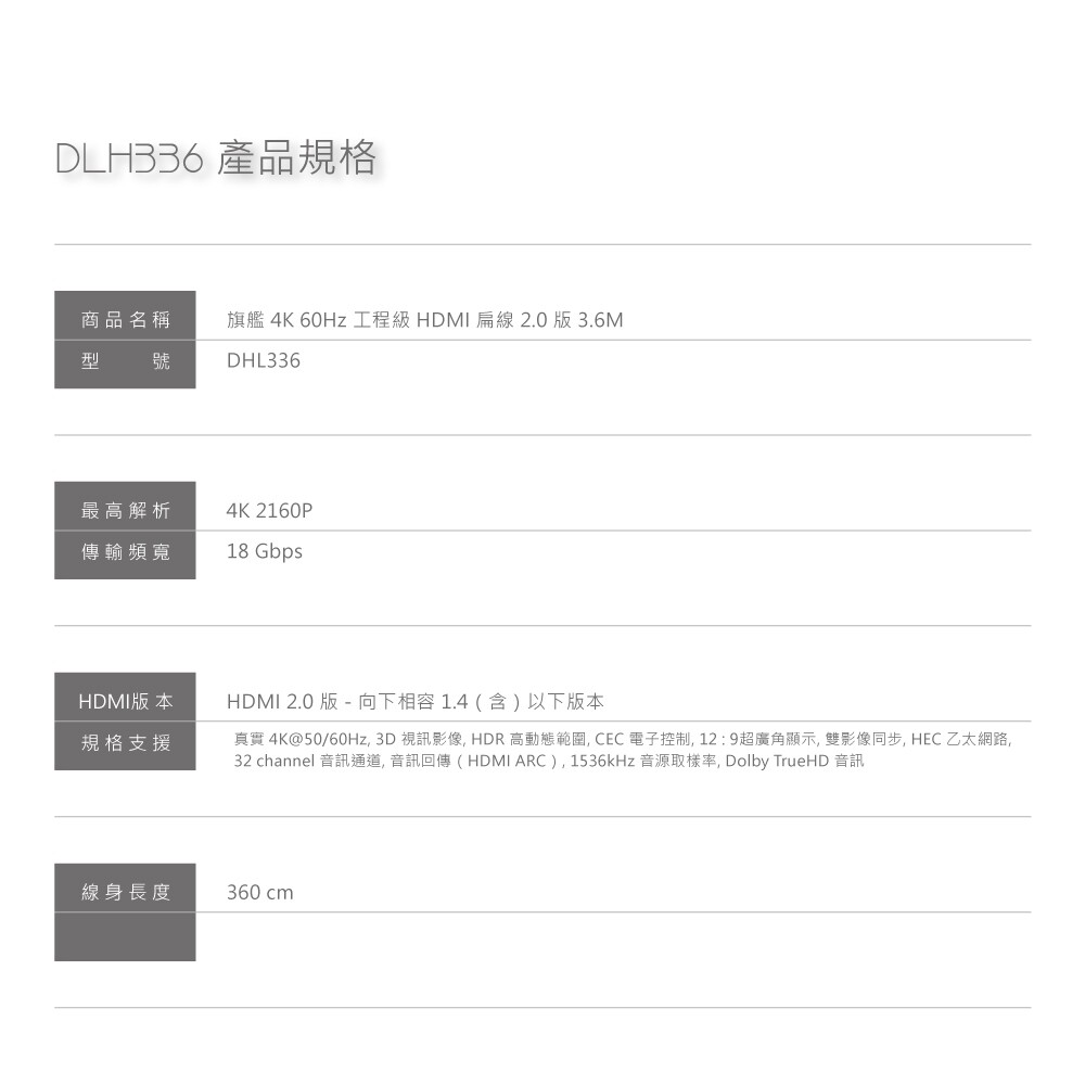 DIKE 旗艦4K60Hz工程級HDMI扁線2.0版 3.6M DLH336