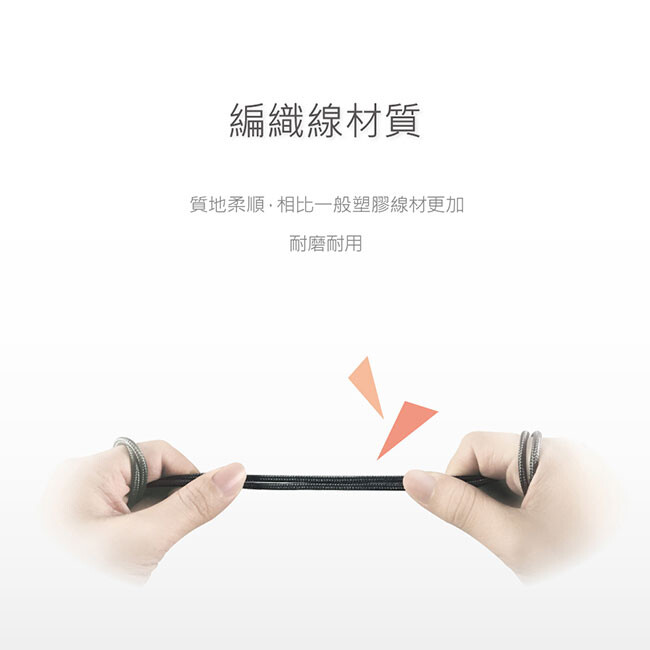 編織線材質,質地柔順,相比一般塑膠線材更加耐磨耐用