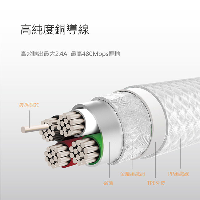 此系列升規加粗銅導線,達成快充40%再升級