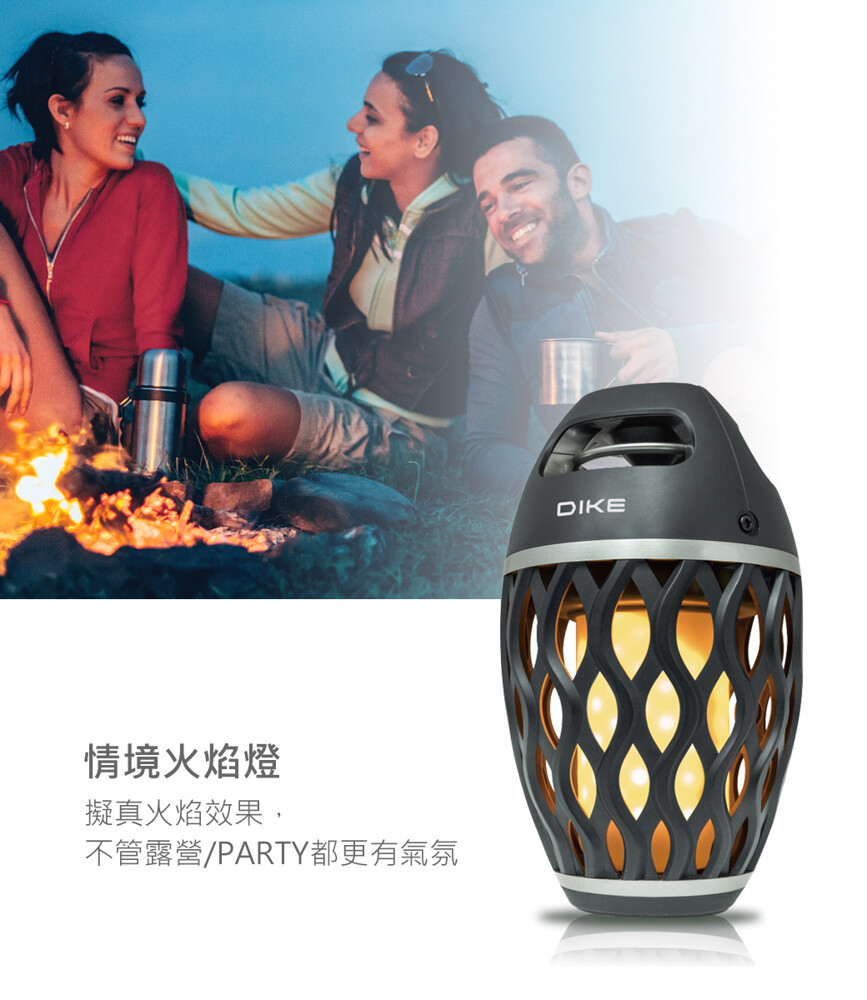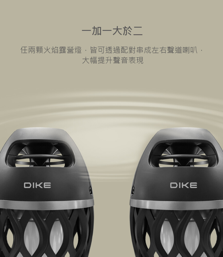 任兩顆火焰露營燈,皆可透過配對串成左右聲道喇叭,大幅提升聲音表現