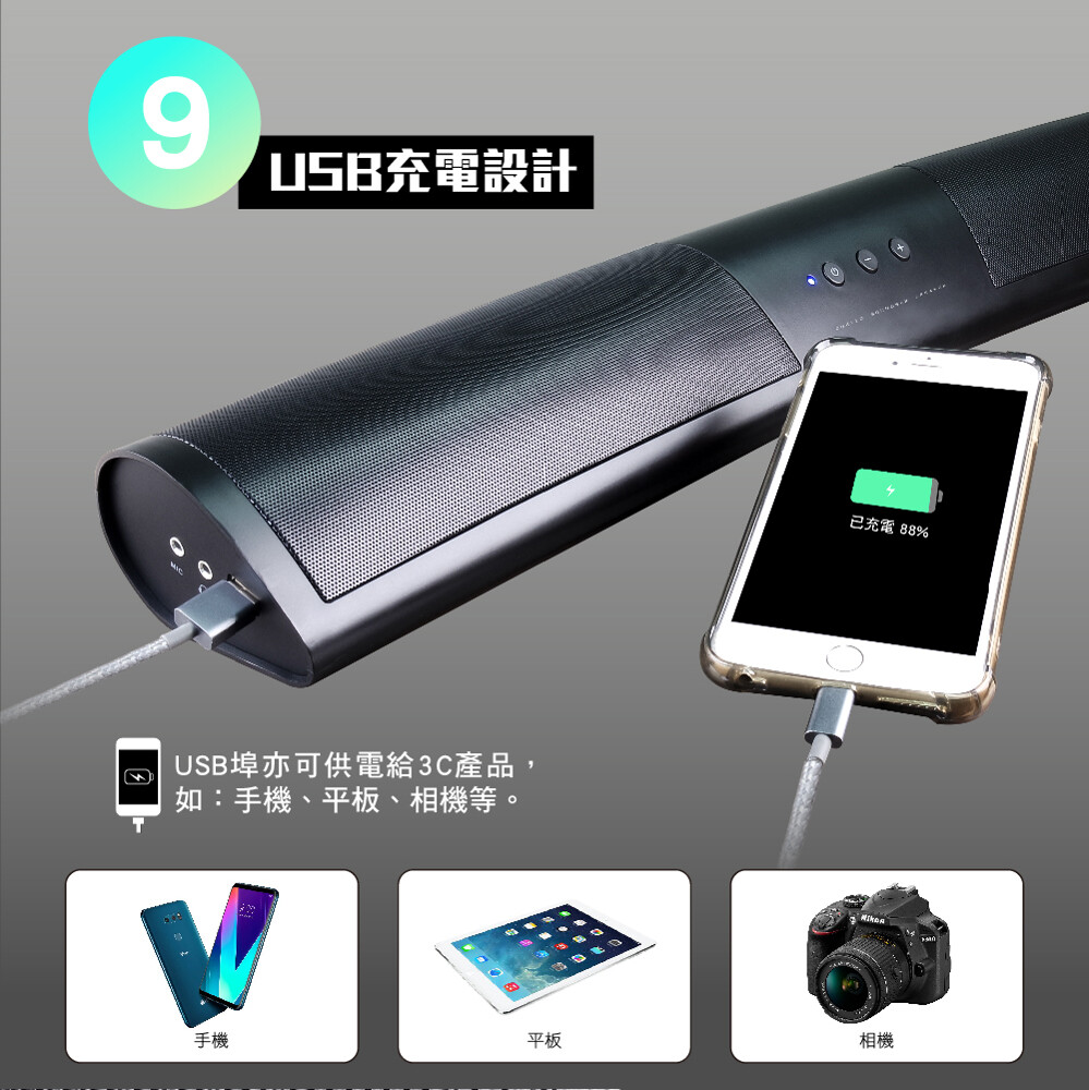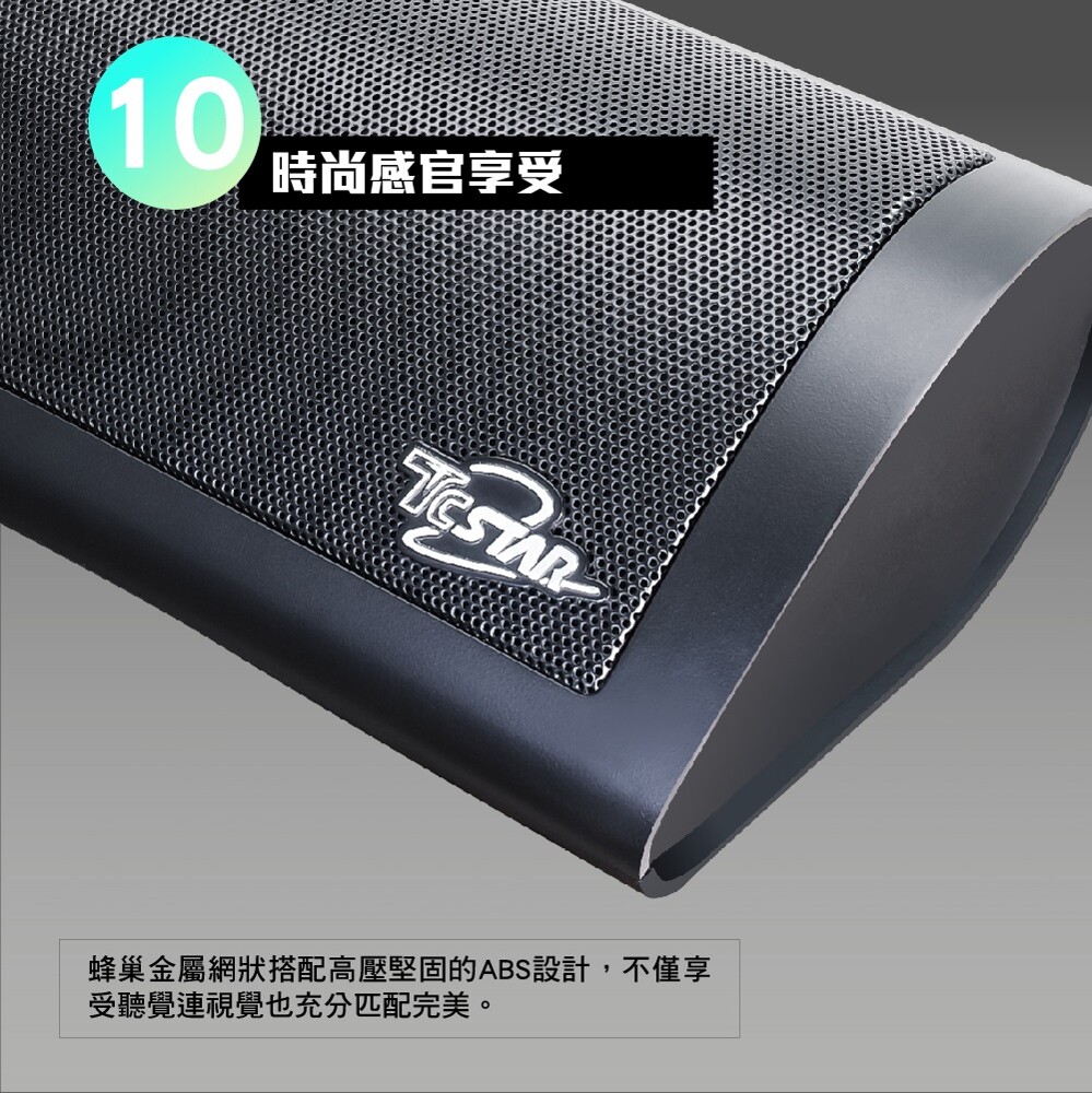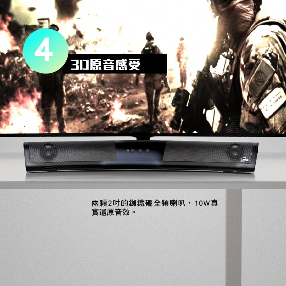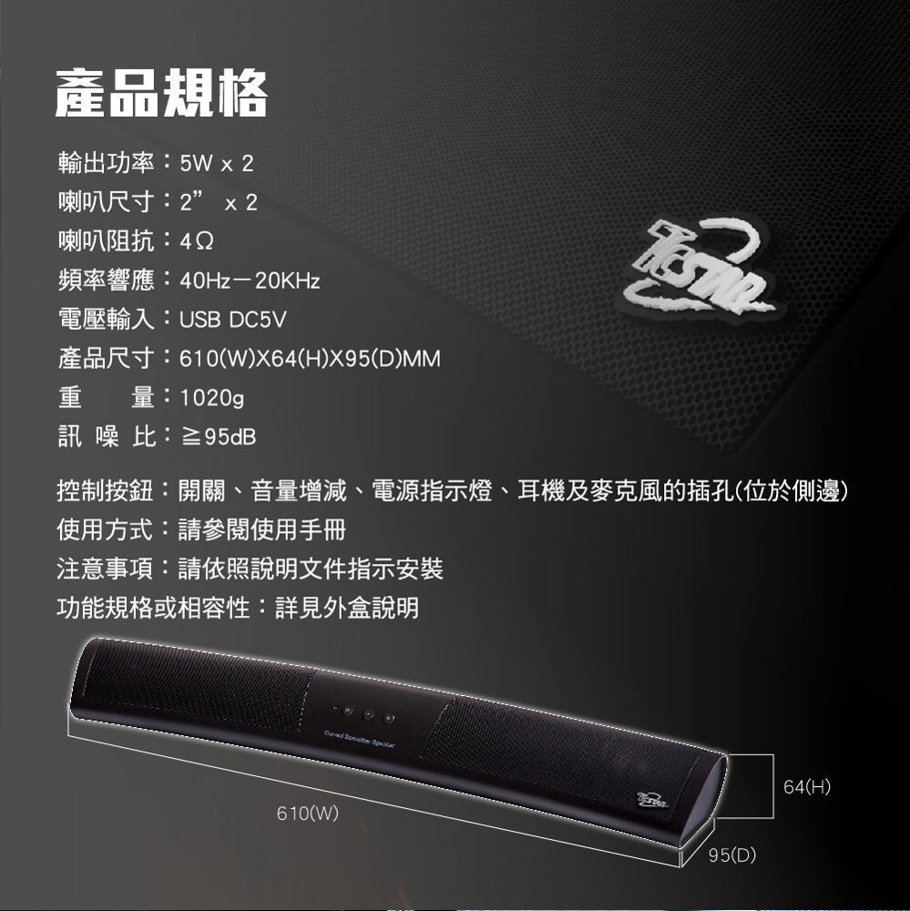 10W真實還原音效 主流電競耳機麥克風(USB輸出)的貼心設計 曲面聲霸設計準確的定位環繞 USB供電設計 蜂巢金屬網狀搭配高壓堅固的ABS設計 喇叭底部設有EVA材質的防滑軟墊 可用於電腦、電視、手機、平板、筆電等影音設備。
