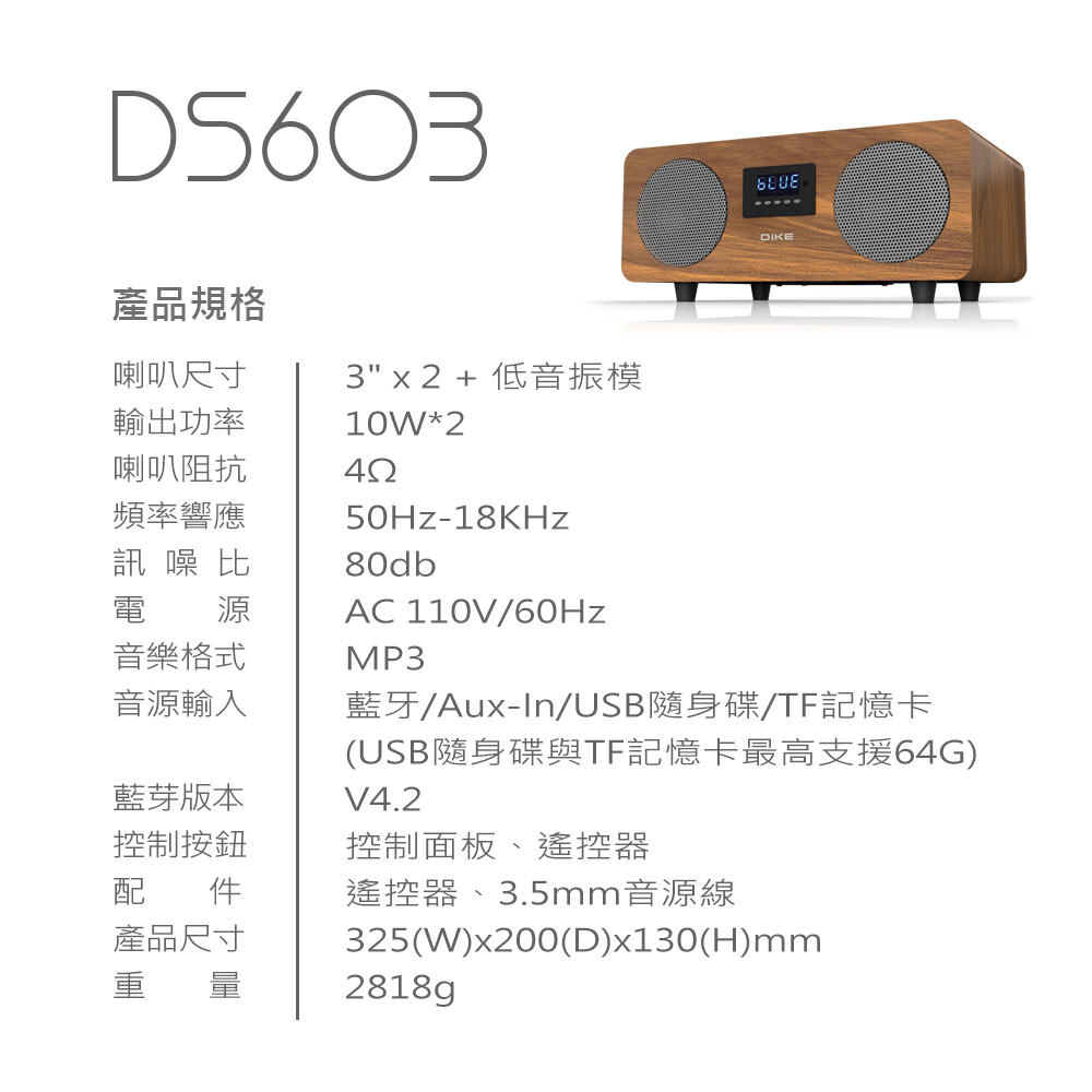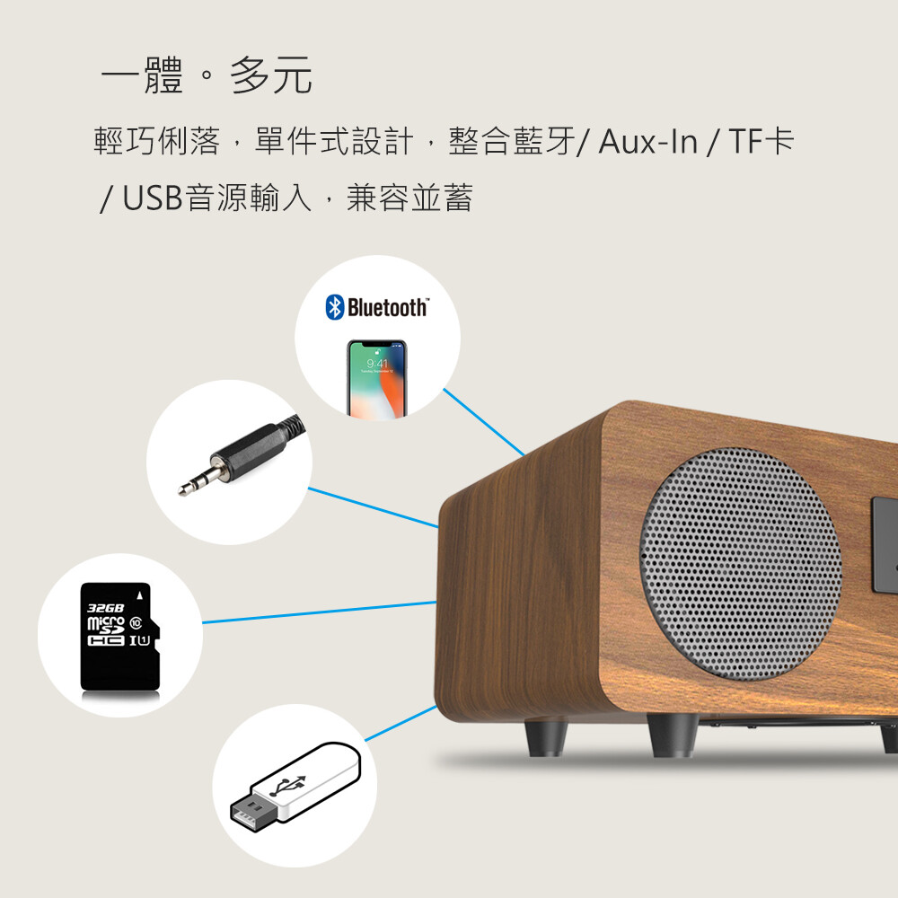 全方位功能:內建藍牙/Aux-In/USB隨身碟/TF記憶卡等音訊輸入模式