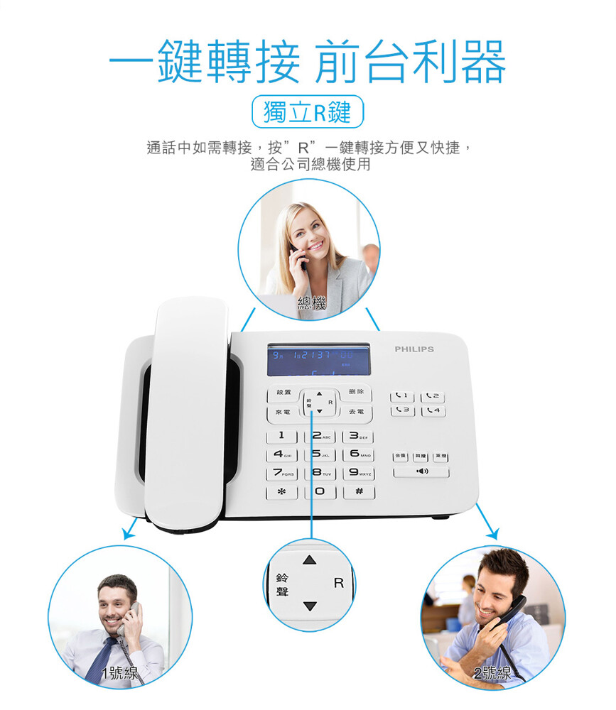 PHILIPS 飛利浦 CORD492 家用電話 室內電話 大螢幕 有線電話 中文顯示