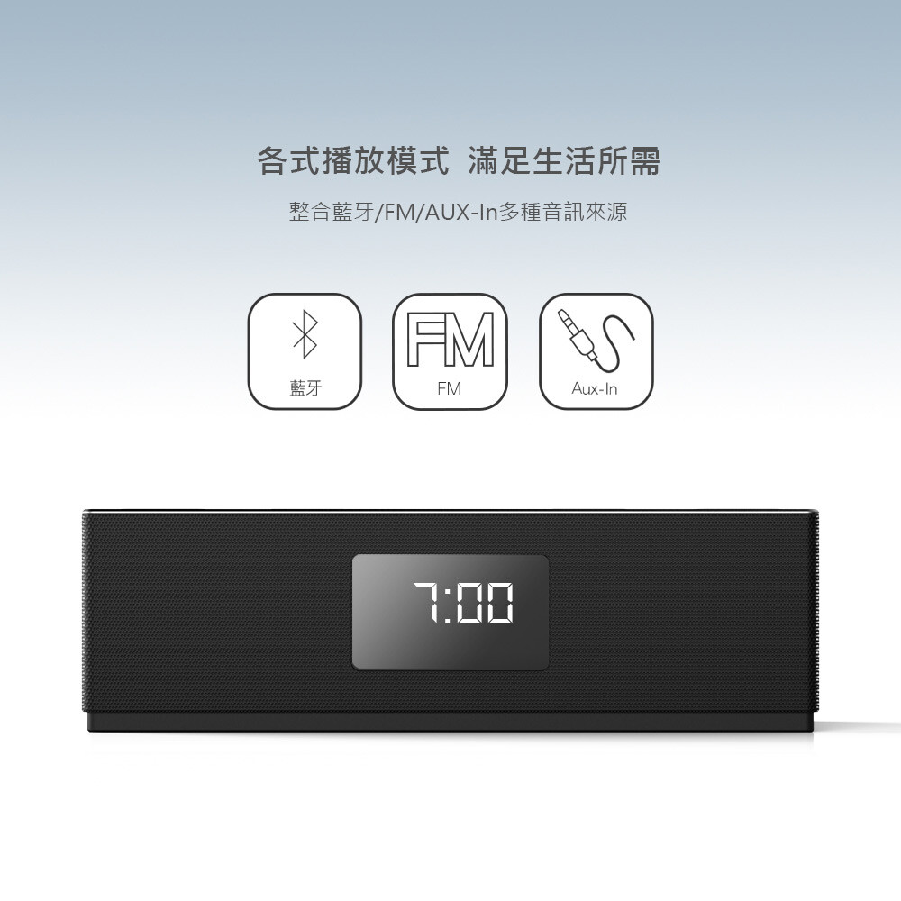 整合藍牙/FM/Aux-In/MP3多種音訊來源