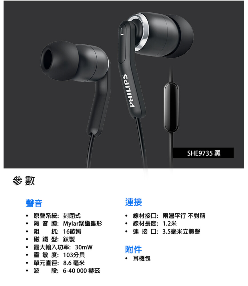 PHILIPS 飛利浦 SHE9735 金屬耳機