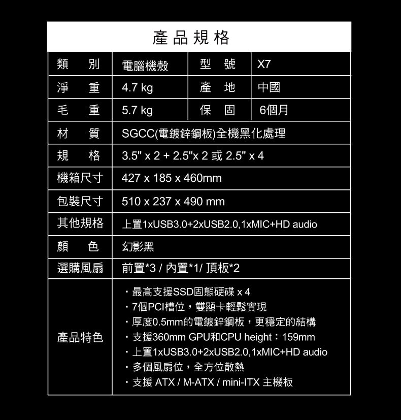 ‧支援 ATX / M-ATX / mini-ITX 主機板