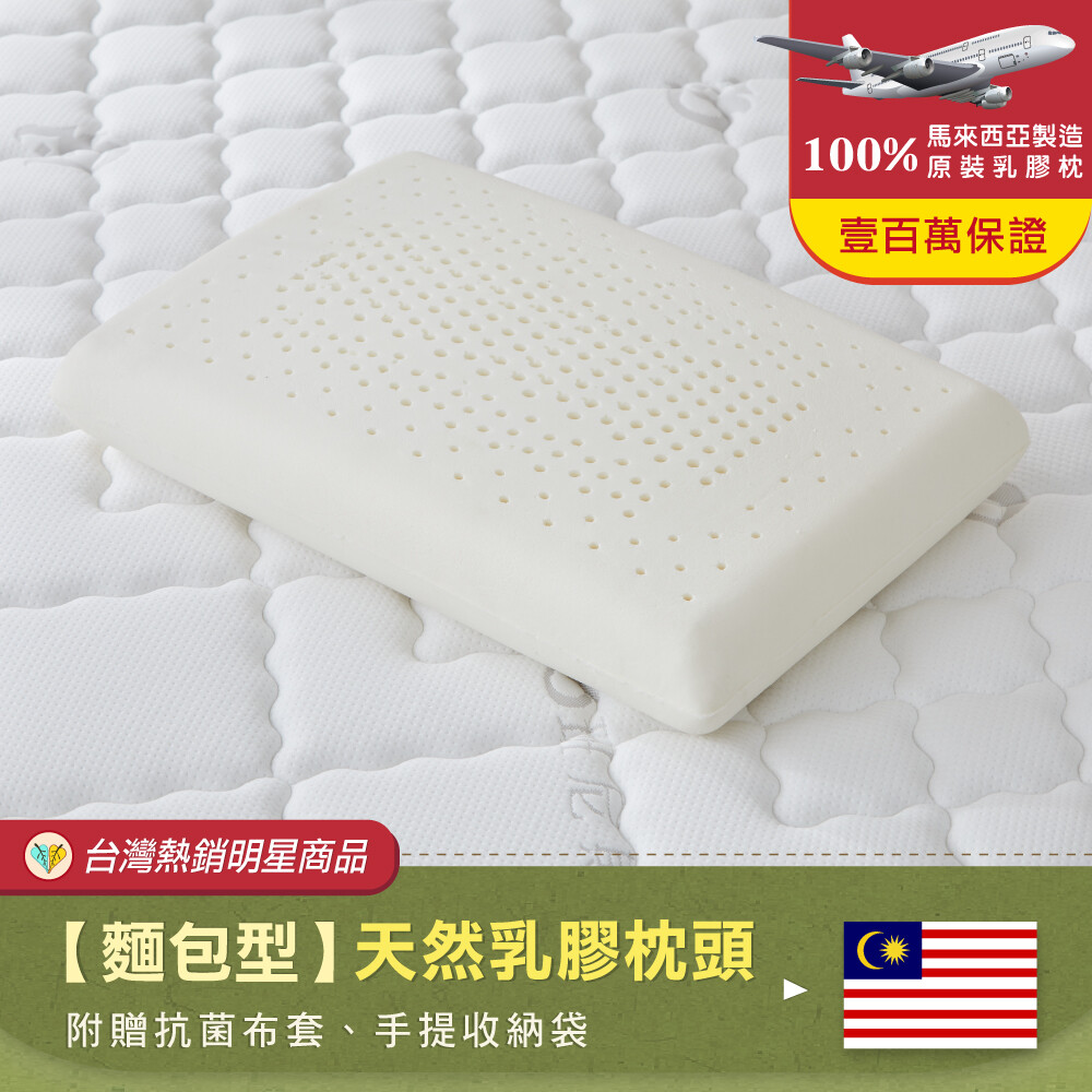 1、商品件數:麵包型天然乳膠枕 + 大和抗菌棉布套 + 送手提收納袋